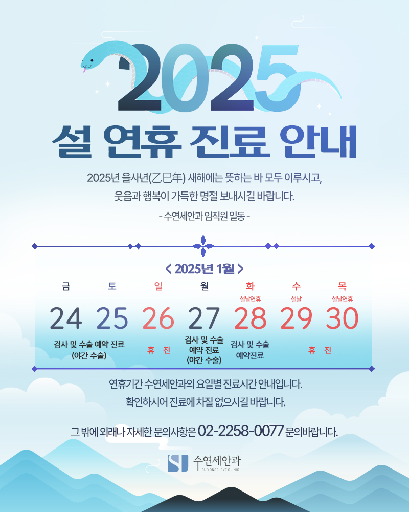 [수연세안과] 2024년 12월, 2025년 1월 진료안내