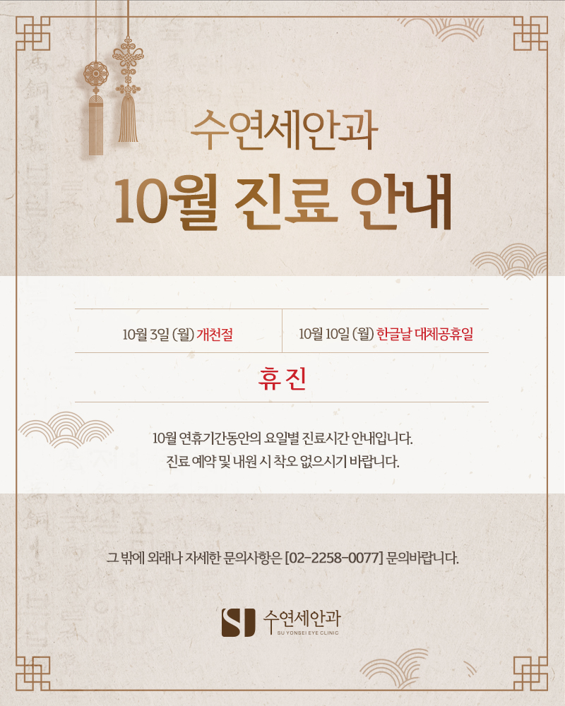 [수연세안과] 2023년 추석, 10월 진료안내
