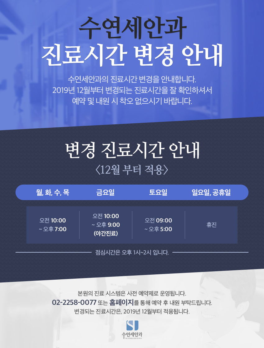[수연세안과] 2021년 12월, 2022년 1월 진료안내