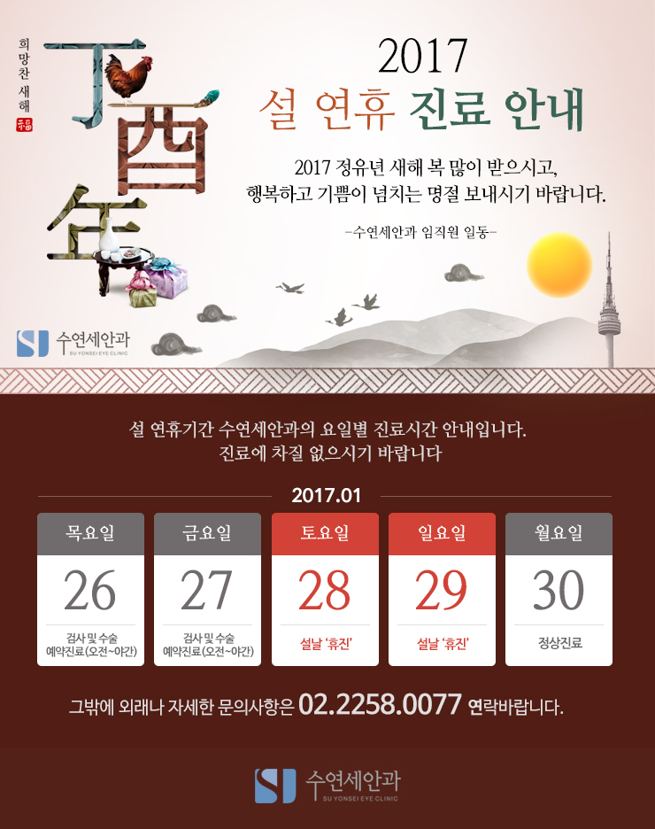 [수연세안과 진료안내] 2017 설연휴 진료안내