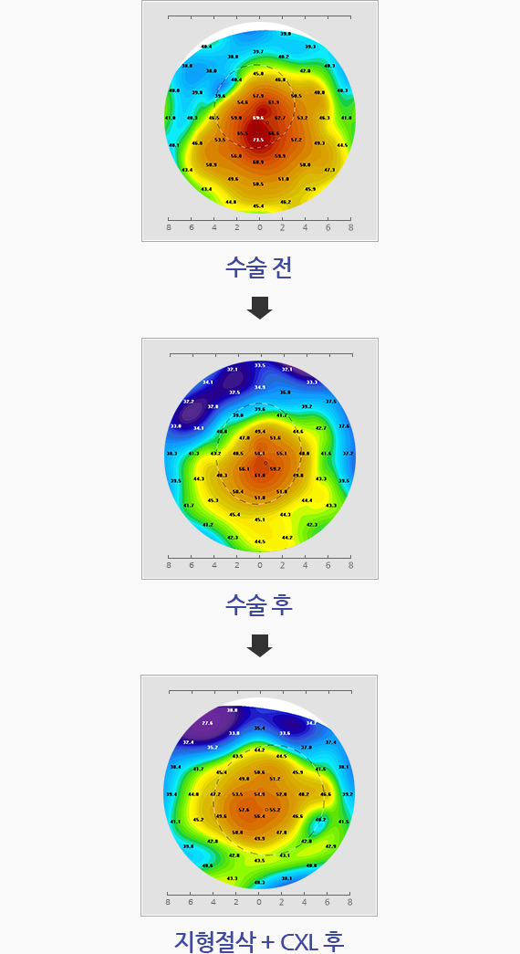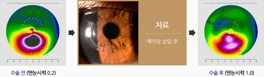 특히 진행이 빠른 원추각막에서 근시, 난시 자체를 줄이고, 소수에서 시력 향상까지 노릴 수 있는 극적인 수술 방법입니다.